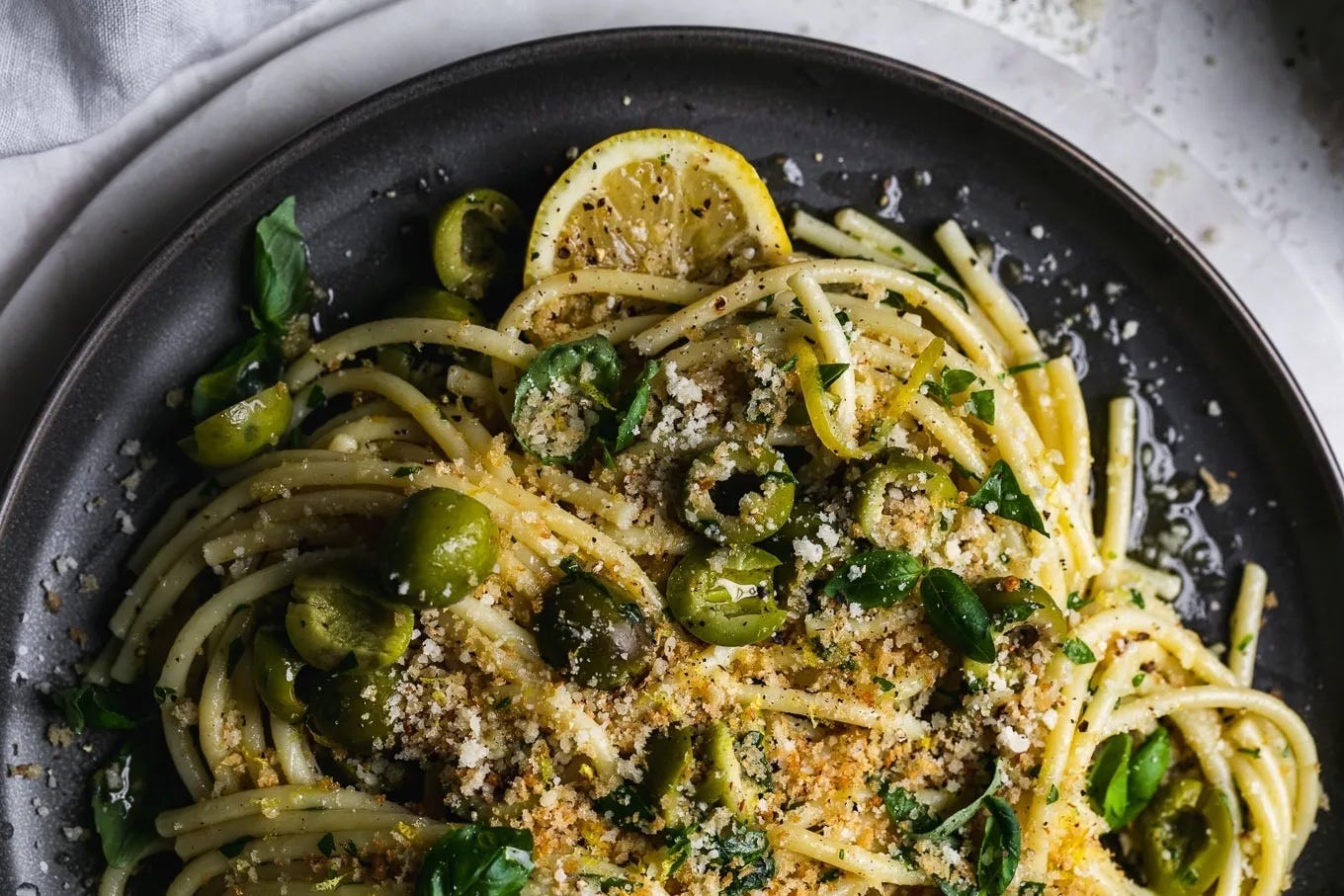 Gătim seara: Paste cu măsline verzi și pesmet