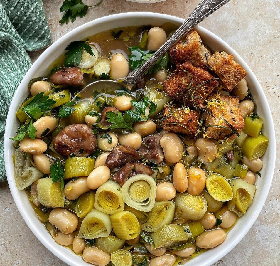 Prânz: Supă de praz și fasole mare