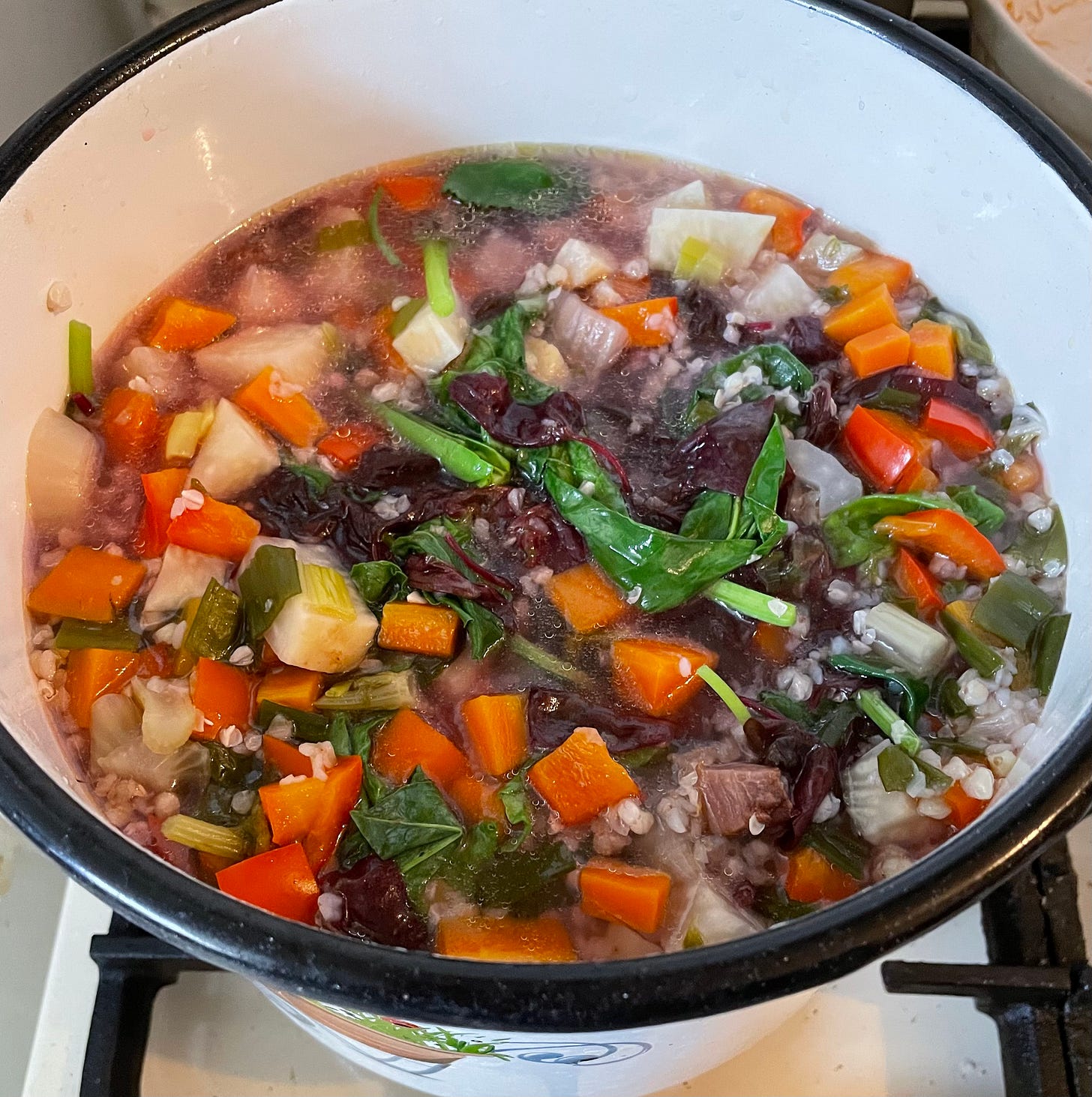 Stock = supă de bază făcută fie din apă fierbinte + legume deshidratate (de la SanoVita, Driedfruits, Solaris și alți producători de produse naturale), fie supă concentrată la borcan de la Zwup/Origini (se găsesc în supermarketurile mari și în cele online), diluată conform instrucțiunilor de pe ambalaj. Se poate folosi și apă, dar stockul aduce un plus de aromă.