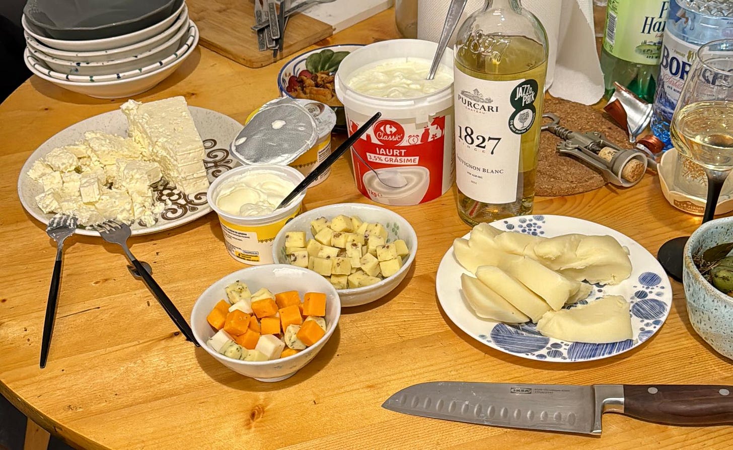 În weekend am dat petrecere cu mămăligă cu brânză și smântână. Am făcut o mămăligă rapidă din mălai integral instant și am pus alături, pe masă, telemea, brânză de burduf, smântână și iaurt. Plus mai multe feluri de cașcaval cuburi, dar acela a fost pentru aperitiv. Și fiecare și-a făcut MBS-ul care i s-a potrivit cel mai bine. Așa că îl punem și în meniul de săptămâna asta. Poftă bună!