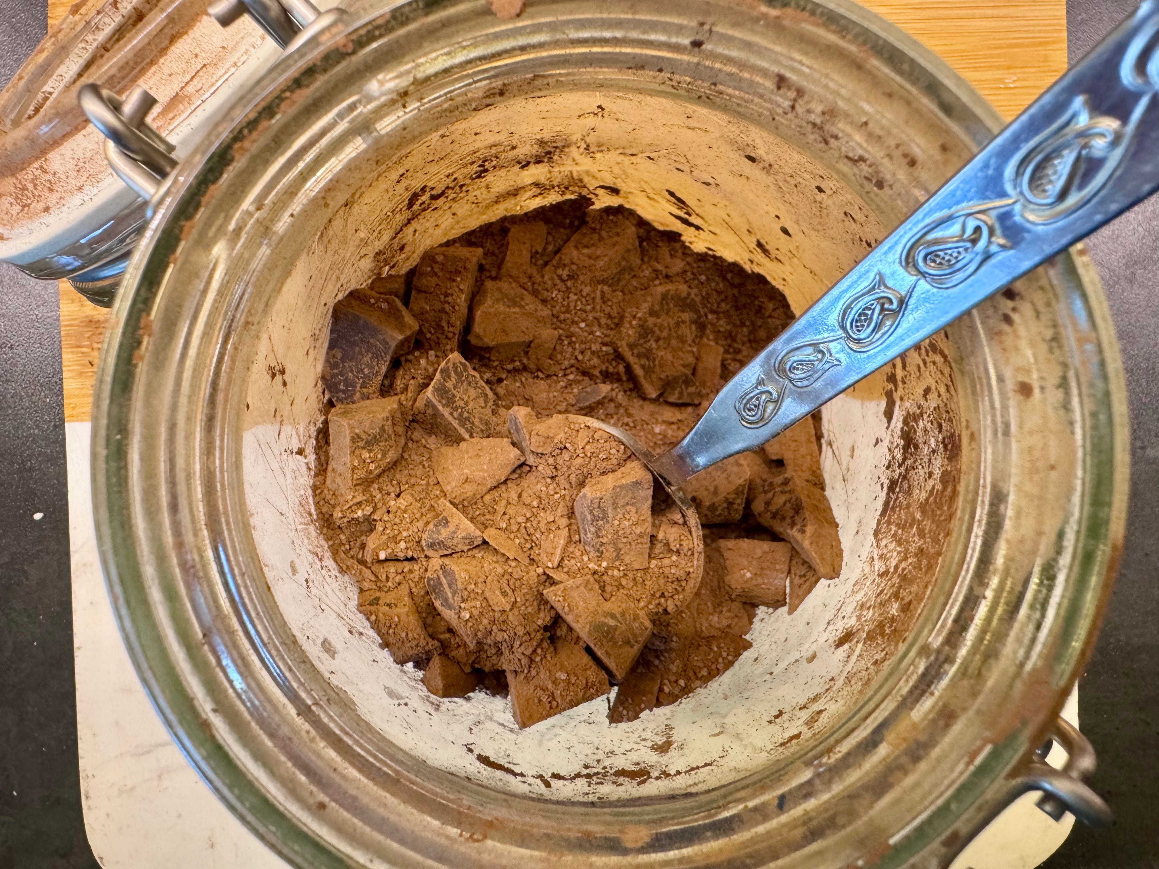 Amestecă totul într-un borcan. Pentru a face o cană de ciocolată caldă, pune 2 linguri de mix cu 250ml de lapte într-o crăticioară, la foc mic. Amestecă constant până s-a dizolvat ciocolata și băutura are un aspect omogen. Dacă vrei o ciocolată groasă, ca în filme, pune și 1 Lg de amidon de porumb de la început. Ia de pe foc când lichidul s-a îngroșat.