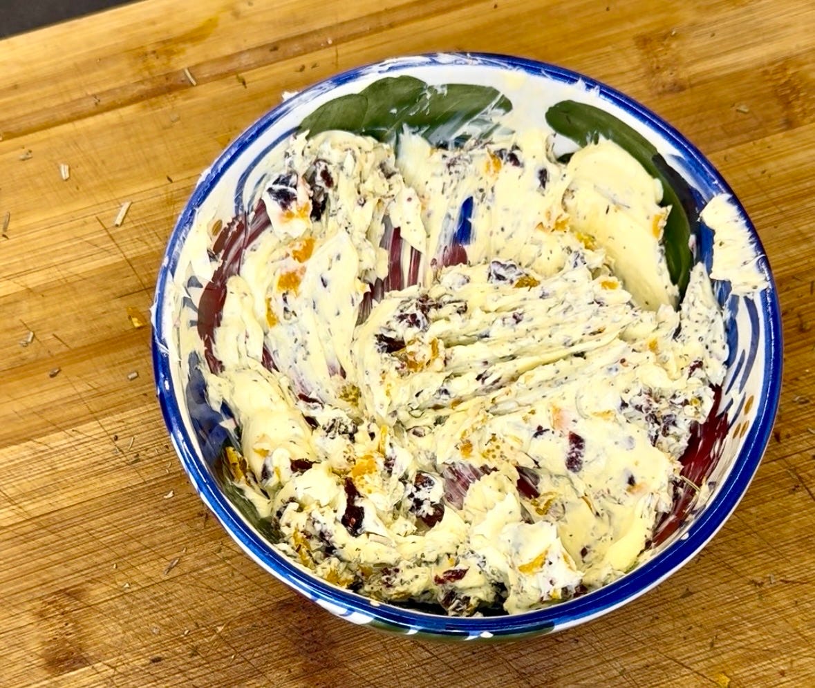 Toacă mărunt ingredientele și amestecă-le cu untul. Atât!