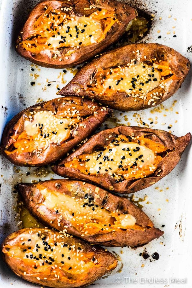 Cartofi dulci umpluți cu tahini
