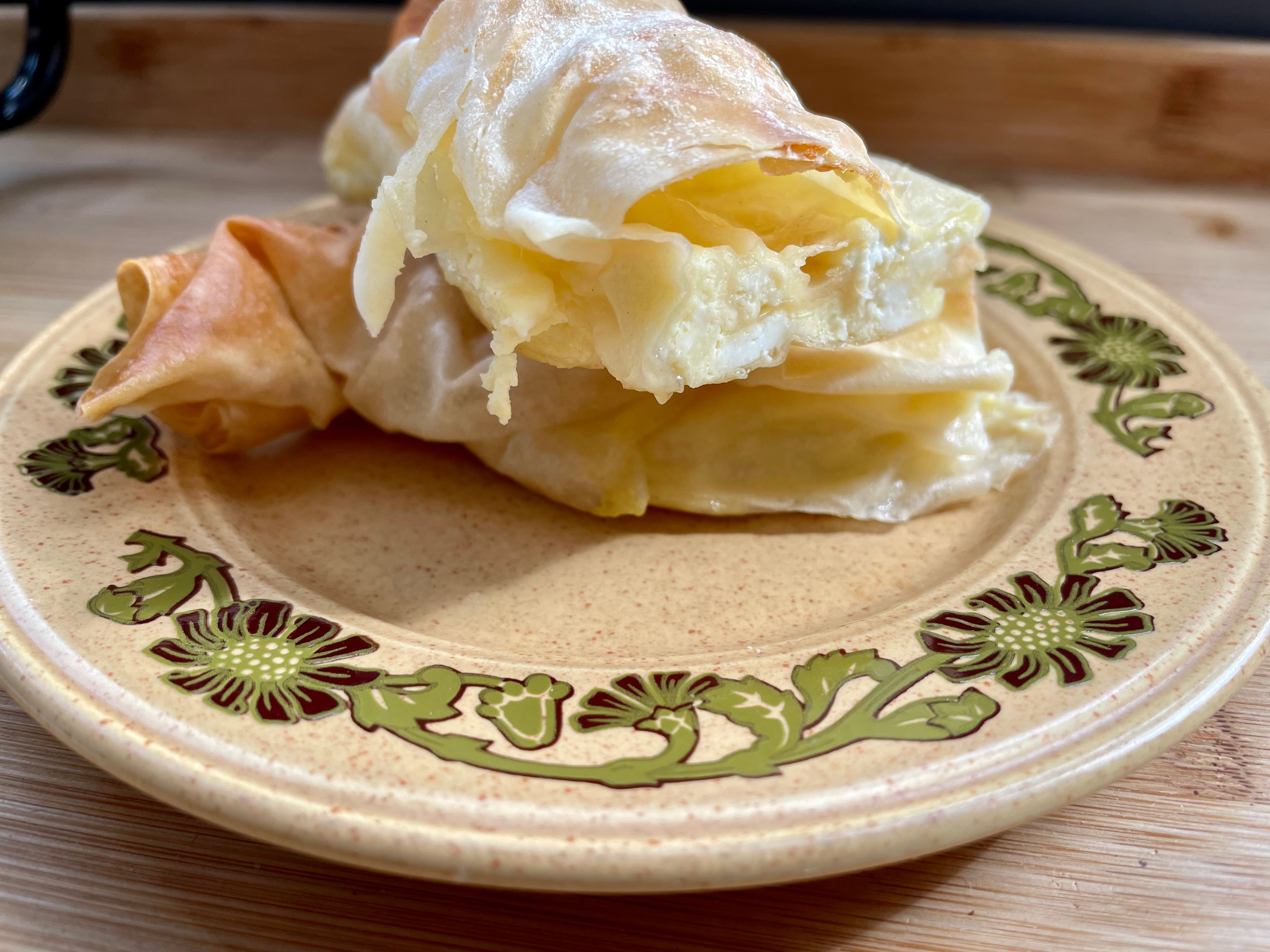 Ai nevoie de foi groase de plăcintă (precum acestea de la Linco, care nu au decât făină, apă și sare), 700g de telemea de oaie, 200g de smântână fermentată și 3 ouă, plus niște ulei pentru uns. Încinge cuptorul la 180C și pune hârtie de copt pe o tavă - poate fi și tava cuptorului. Amestecă într-un bol telemeaua sfărâmată, smântâna și ouăle. Întinde fiecare foaie, unge-o cu puțin ulei și întinde câteva linguri de amestec pe toată foaia, apoi ruleaz-o și pune-o în tavă. Repetă până termini foile și umplutura (sunt 7 foi în pachet). Unge și pe deasupra cu ulei și dă la cuptor 20-25 de minute, până e rumenită deasupra.